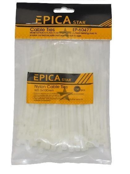 Fehér kábelkötegelők 100 db-os kiszerelésben. Ideális kábelek, vezetékek és egyéb tárgyak gyors rögzítésére.