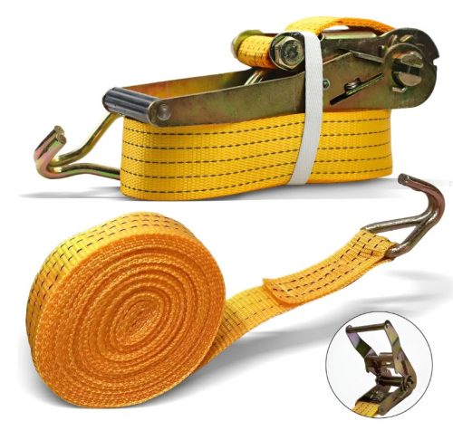 Erős, megbízható rakományrögzítő heveder szállításhoz és rakománybiztosításhoz. Könnyen kezelhető racsnis feszítőszerkezettel, stabil tartással. Alkalmas utánfutóra, teherautóra és egyéb szállítóeszközökhöz